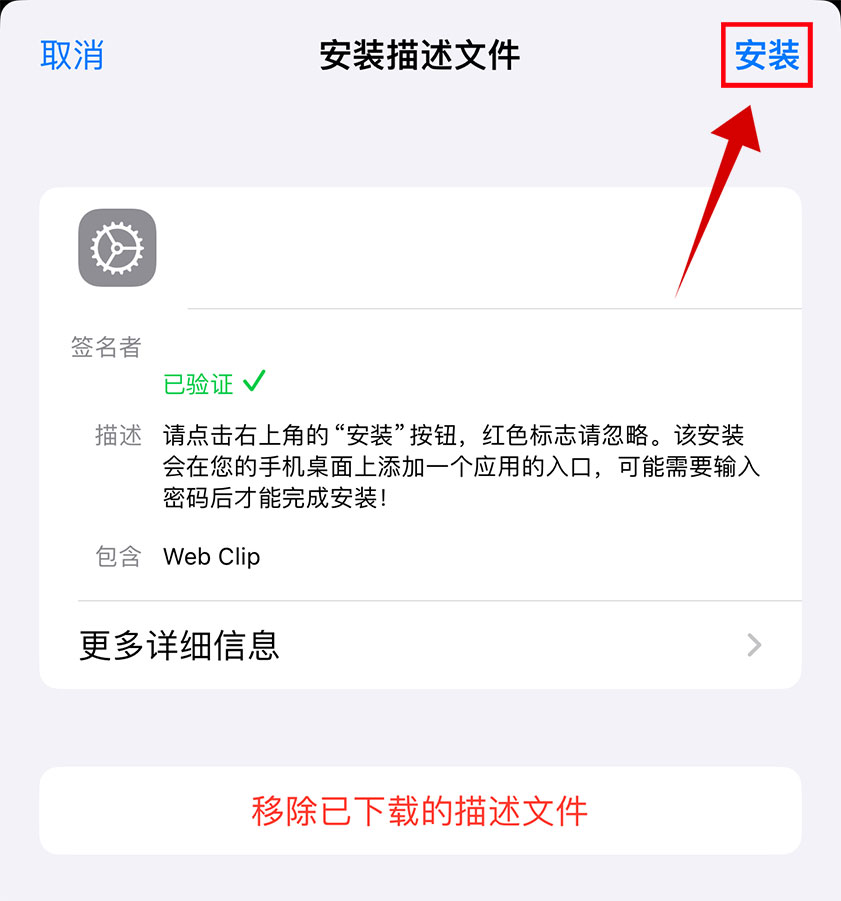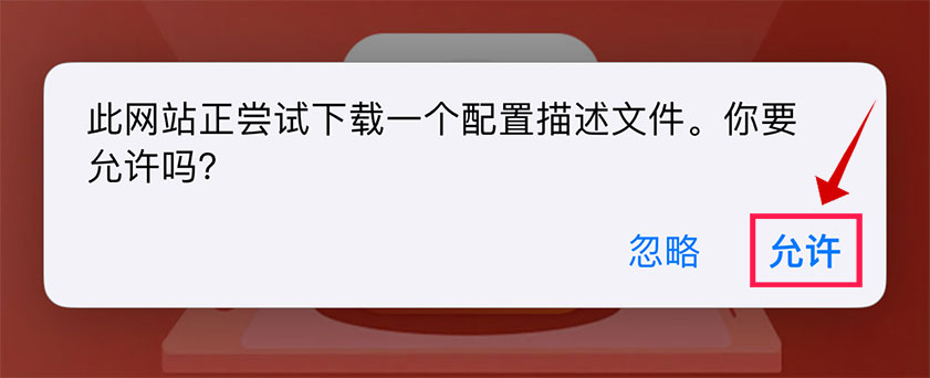 允许安装未知的来源,点击“允许”安装必要的描述文件