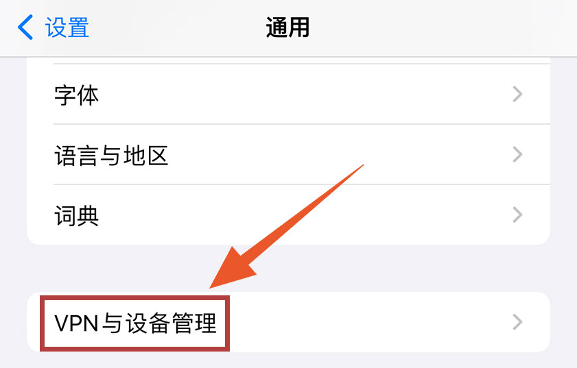 第三步:进入通用,点击 描述文件与设备管理